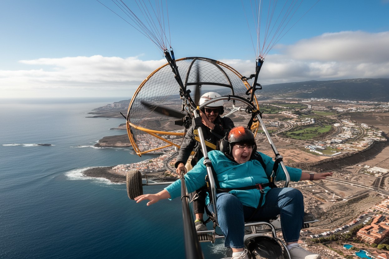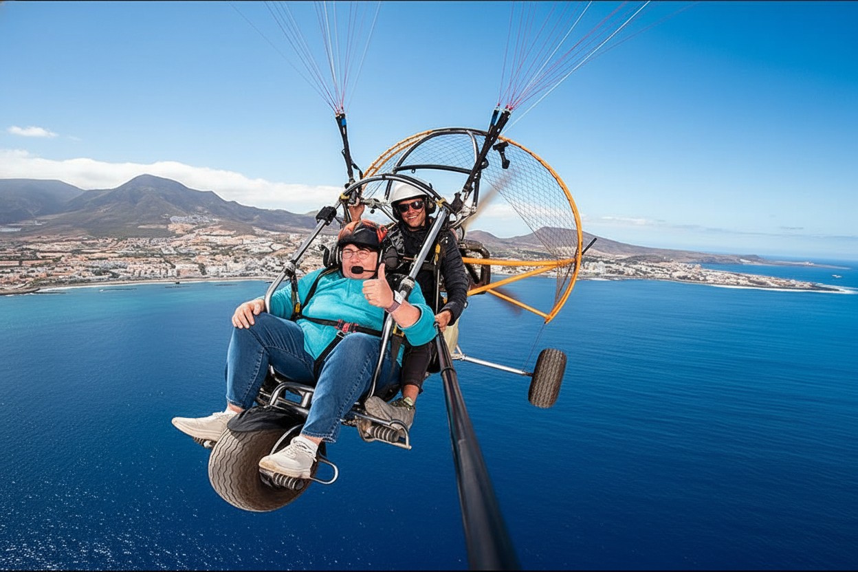 Soar above southern Tenerife on an unforgettable 25-minute paratrike flight with Paratrike Tenerife. Glide safely in a motorized three-wheeled ultralight with a large parachute, taking in stunning coastlines, cliffs, and landscapes from a unique aerial perspective.