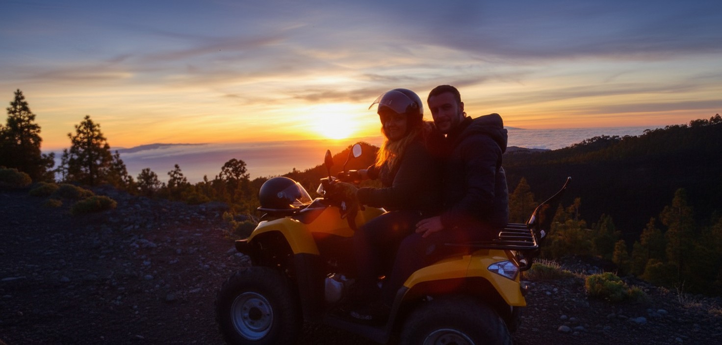Join us for an unforgettable Sunset Teide Quad Tour – a 3-hour ride through Tenerife’s stunning volcanic scenery and into the heart of Teide National Park. Enjoy a guided, scenic ascent on safe paved roads as you watch the sun set above the clouds.